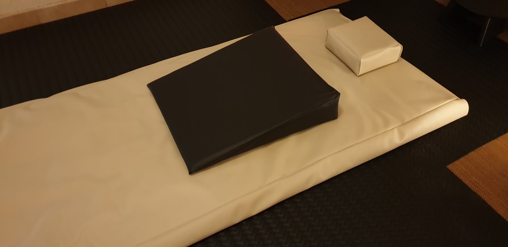 Utilisé pour soulager les tensions cervicales en position ventrale, ce coussin permet de travailler la région dorsale sans mettre les cervicales en extension. D'une hauteur adaptée, il n'augmente pas la courbure lombaire. En noir, marron foncé ou beige clair, taille unique. en Skaï et mousse dense.